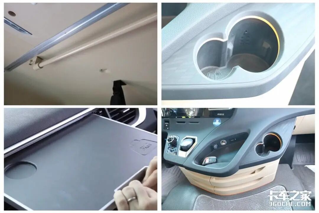 实际上,在细节方面,这款银河牵引车真的很让人惊喜,比如冷暖杯架、中控台下方的氛围灯、自带的衣帽钩、副驾驶前方的小桌板等,虽然在很多卡友看来是可有可无的小配置,但在实际使用过程中会发现正是有了这些小细节,才让我们的运营更加舒心,拥有不一样的驾乘体验。