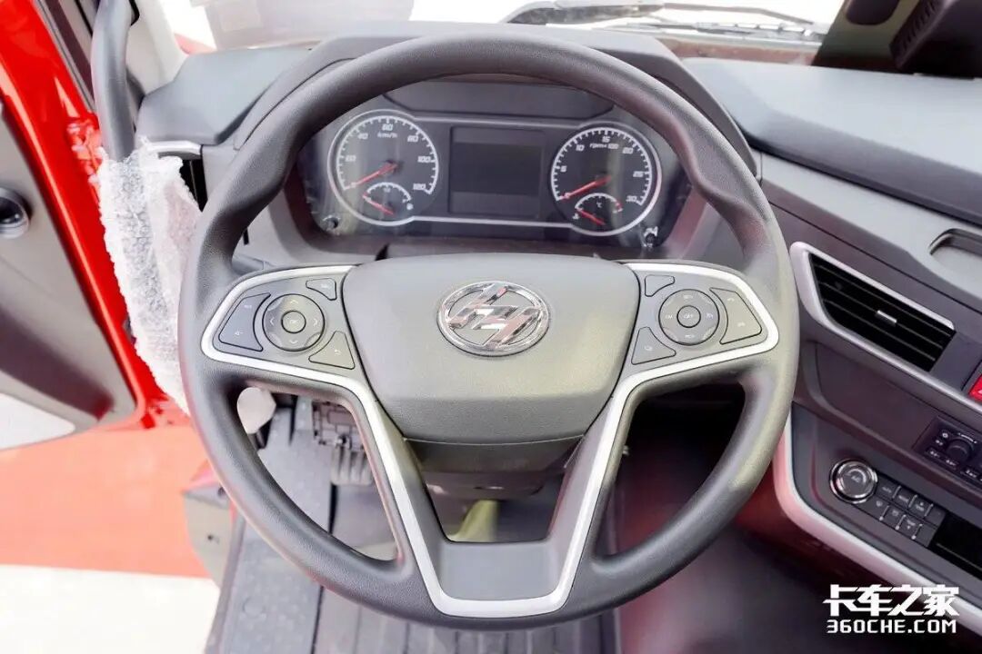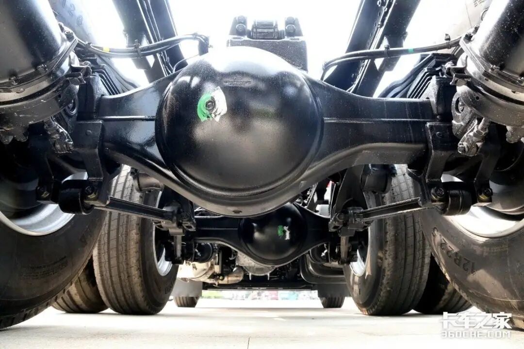 实拍的子车采用了铝合金轮圈来进一步优化重量,后轮则为轻量化钢制轮圈,轮胎规格均为12R22.5。来自双星的D126轮胎,主打的是经济性与耐磨性能,在长久的用车过程中可以跑更长的里程才需更换,并且更低的滚动阻力可以让车辆更节油。