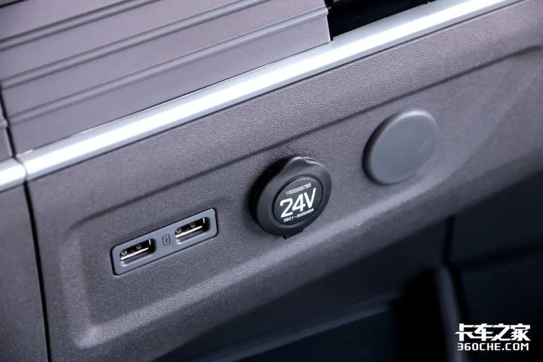 在靠近副驾驶的位置,杰虎H6子母车均配备了2个USB接口和1个24V电源接口,方便卡友们加装车载电器或是为副驾驶手机充电,这一点非常贴心。