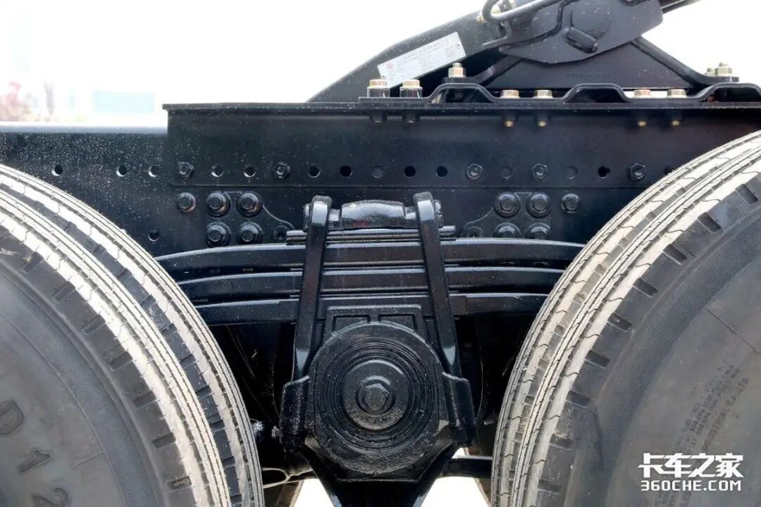 实拍的杰虎H6子母车均采用了轻量化的汉德HY390单级减速桥,速比为3.7。根据卡车之家车速计算器计算可以得出,该车在经济转速区间中的1200-1300rpm时,车速就可以达到82-89km/h,时效性也能得到保障。