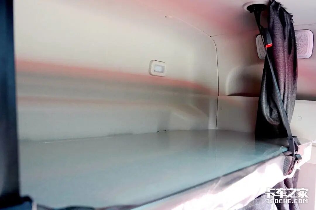 杰虎H6子母车的卧铺也是其一大亮点,该车的上下卧铺都非常厚实,采用了记忆海绵填充,上下卧铺的宽度均超过了85cm,给两位驾驶员以更高的自由度。而在床头,像照明、储物格也为卡友们安排上了。