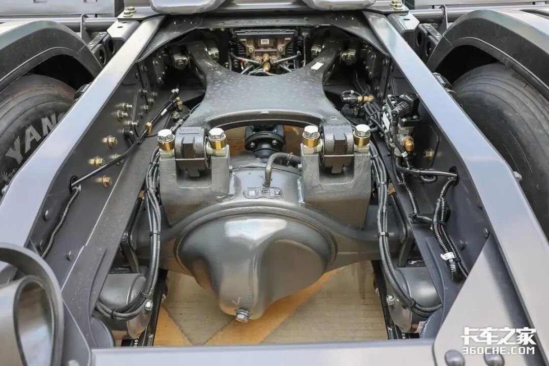 我们再看底盘,实拍车型想必之前的乘龙H7在底盘上有了很大的变化,如该车前桥标配盘式制动器,底盘采用双横臂结构,为独立悬架设计。如此以来能大幅度提升该车型的操控感受和行驶路感,而且连接双横臂悬架的是气囊减震包,此类设计还是比较少见的。