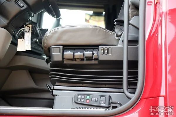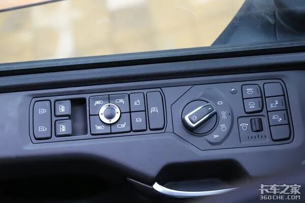 斯堪尼亚将大部分的多功能按键(类似于中控锁、后视镜导盲镜电动调节电加热操控按键、电动门窗操控按键、灯光调节按键等)安置在了驾驶员左手边的车门框处。不仅在操作时更加方便,同时降低了工作台的高度,搭配上曲面屏设计的前挡风玻璃,可以给到驾驶员更开阔的视野。