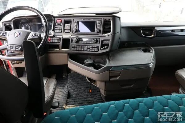 S系列作为斯堪尼亚的当家产品,其驾驶室舒适程度毋庸置疑,其驾驶室一改G系的凸地板设计,纯平地板搭配上宽敞的驾乘空间,比一些青年旅舍的单间都大。车辆的驾驶室采用四点气囊悬浮的悬挂形式,在经过一些路况不太好的国道路段时可有效降低颠簸感。