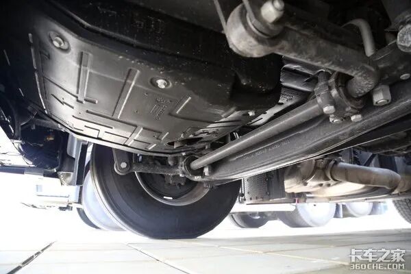 最后,车辆的大部分零部件均采用的是铝合金的材质,包括油箱、储气筒、车轮轮辋、变速箱壳体等,搭配上前少片簧后气囊的悬挂形式,有效的降低了车身的自重,在空载或轻载时可以更好地控制油耗。