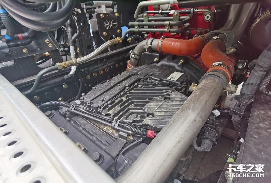 快递对时效性有一定的要求,说到时效就离不开动力链配置,发动机采用的是福康A13系列机型,排量近13L(实际12.8L),最大输出功率调教到了580马力,最大扭矩达到了2600牛米,并且满足国六b排放标准。从数据上来看,这台发动机相当暴躁了,13L的排量580马力,而且是放在一台4X2的快递牵引车上,这感觉就是大马拉小车。