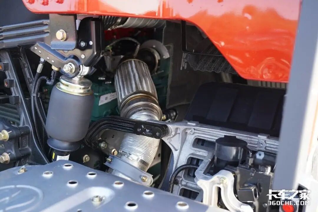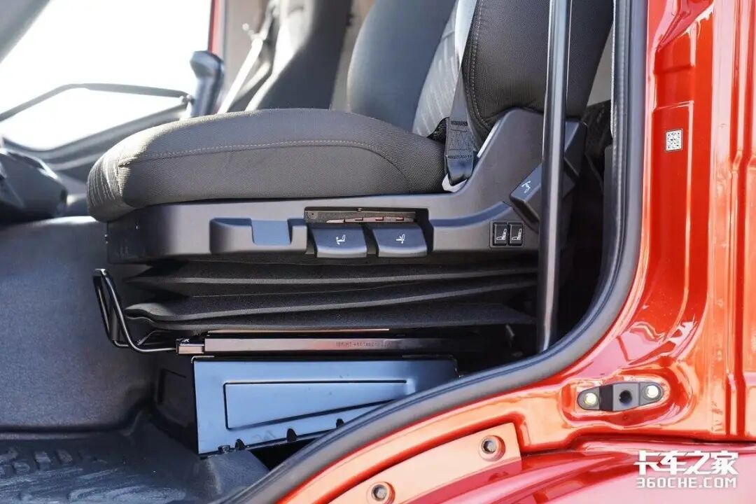 驾驶室采用了四点空气悬置设计,其中前边的两个气囊内部集成了阻尼器,后悬置加大了摆臂长度和活动行程,不止上下的冲击能很好的缓解,左右方向的颠簸也能得到一定程度的缓解。再加上集成多项功能的航空级减振座椅,能够大幅度降低我们日常行驶的疲劳感。
