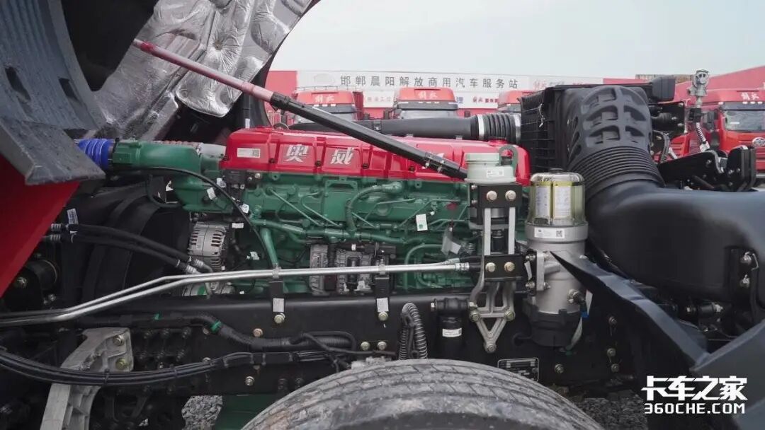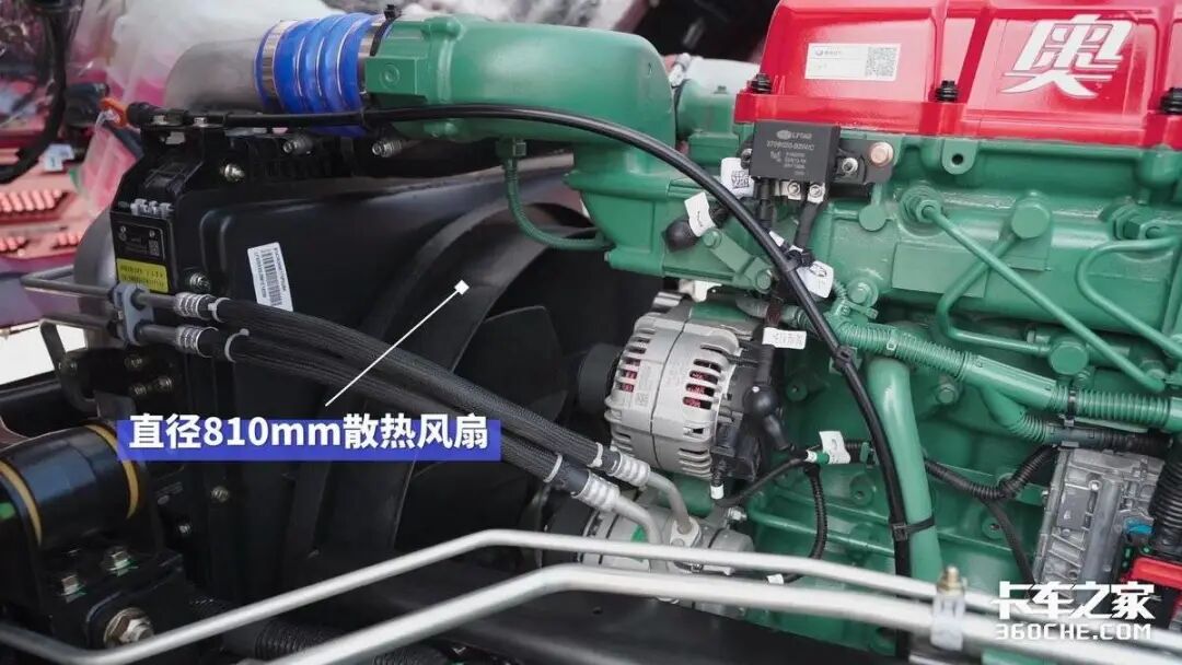 而且,这款发动机的散热风扇也是个节油关键点,它的直径更大,达到了810mm,让发动机控温更精确,且动力损失更小,再加上这款发动机进行了后处理技术升级,实现整车节油效果最优。