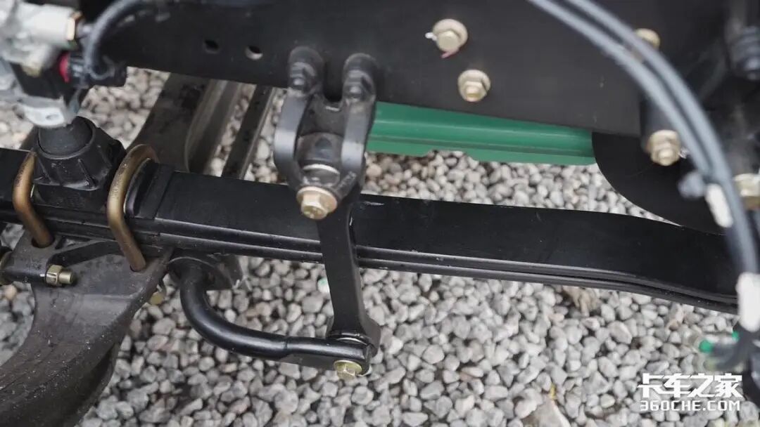 首先看减振性能,这款一汽解放J6P经典版的前桥和后桥都是两片板簧,这个设计不止具备了轻量化的特性,还具备了更好的减振性能。尤其是前板簧的长度更长,减振效果十分优秀。