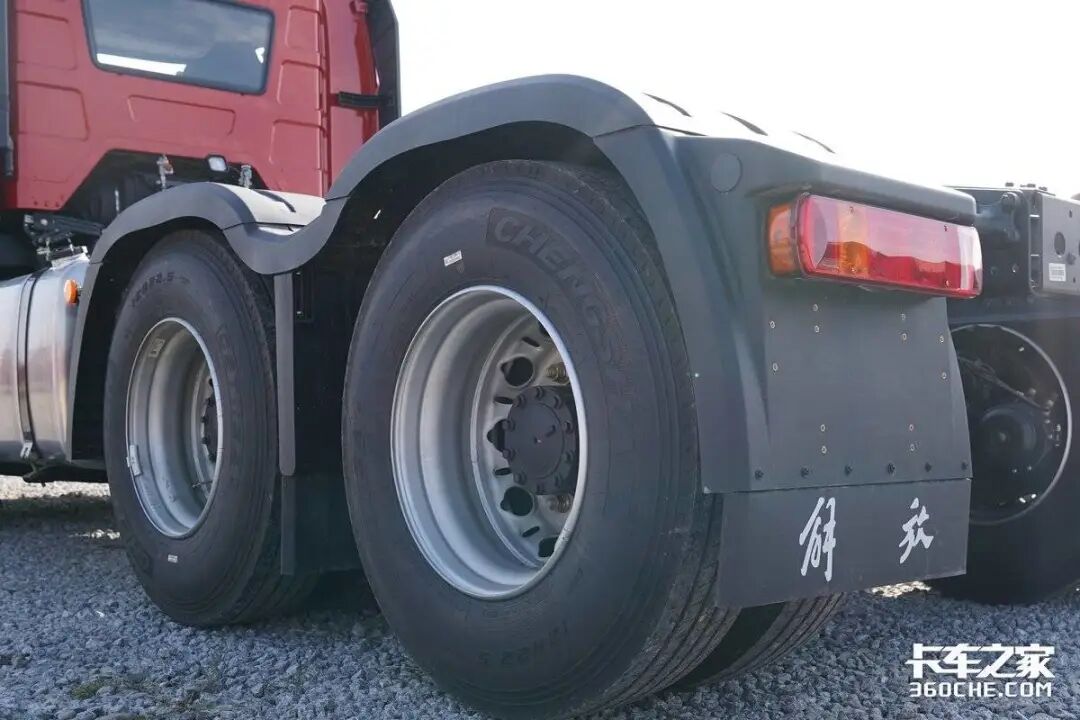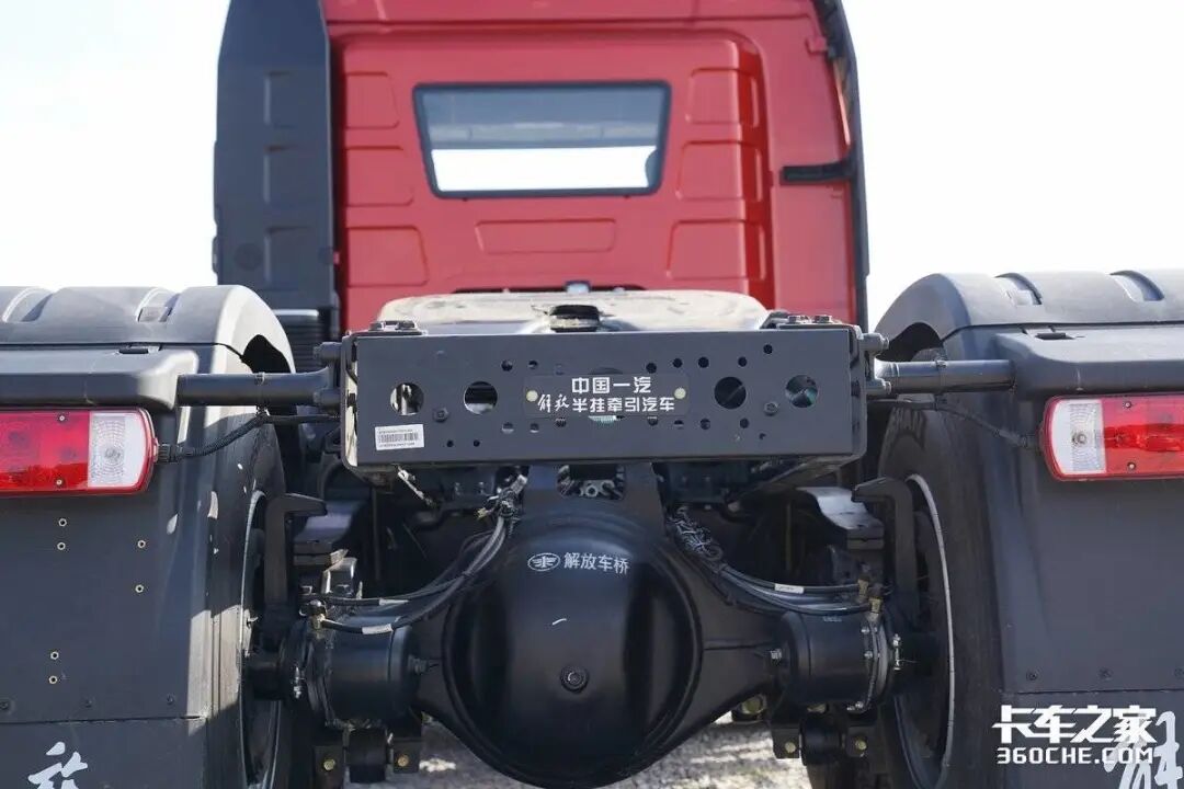 另外,这台一起解放J6P经典版的前后桥都采用了两片变截面钢板弹簧。同时平衡悬架横梁也进行了减重的设计。使用了铝合金横梁,在保证车架整体强度不变的情况下,拓补优化降低自重,平衡悬架也同为轻量化材质,可帮助车辆进一步降重。