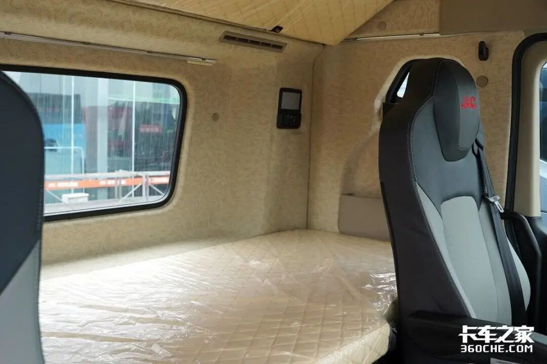 在舒适方面,该车驾驶室配置有四点气囊悬浮,可以根据运输场景进行标定,其驾乘舒适感会更好。还有主副驾座椅均是具备有气囊减震功能,还支持通风加热以及两级腰部支撑调节,就这舒适性能,即便长途运输足够劳累,也能很大程度上减轻卡友们的疲劳程度。