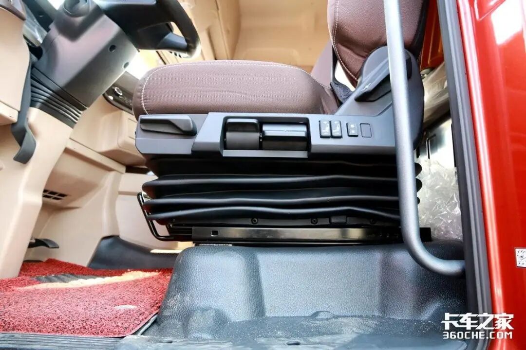 安道拓气囊减震座椅配合上气囊悬置的驾驶室,让驾驶者开起车来如乘坐在魔毯上,过滤震动优秀。同时,座椅的右侧带有扶手,累了将手枕在扶手上可以大幅度缓解手臂酸痛。安全带也是与座椅集成在一起的一体式安全带,颠簸中也能时刻贴合驾驶员肩膀。