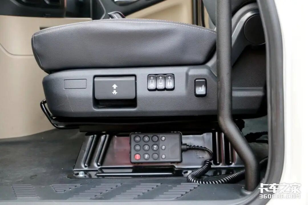 V7的座椅采用了调节选项非常丰富的气囊减震座椅,甚至还带有座椅通风、座椅加热及座椅按摩功能。在座椅的下方还有ECAS控制手柄,可以很轻松调节车辆悬挂高度,在甩挂运输时非常方便。