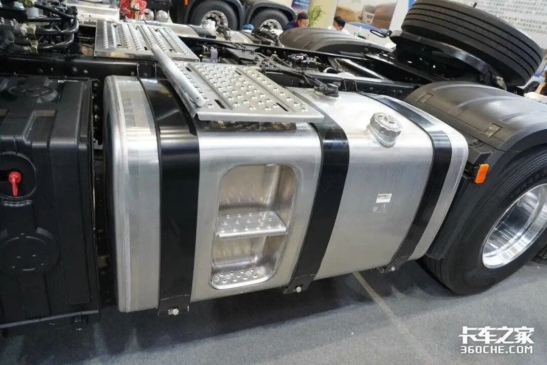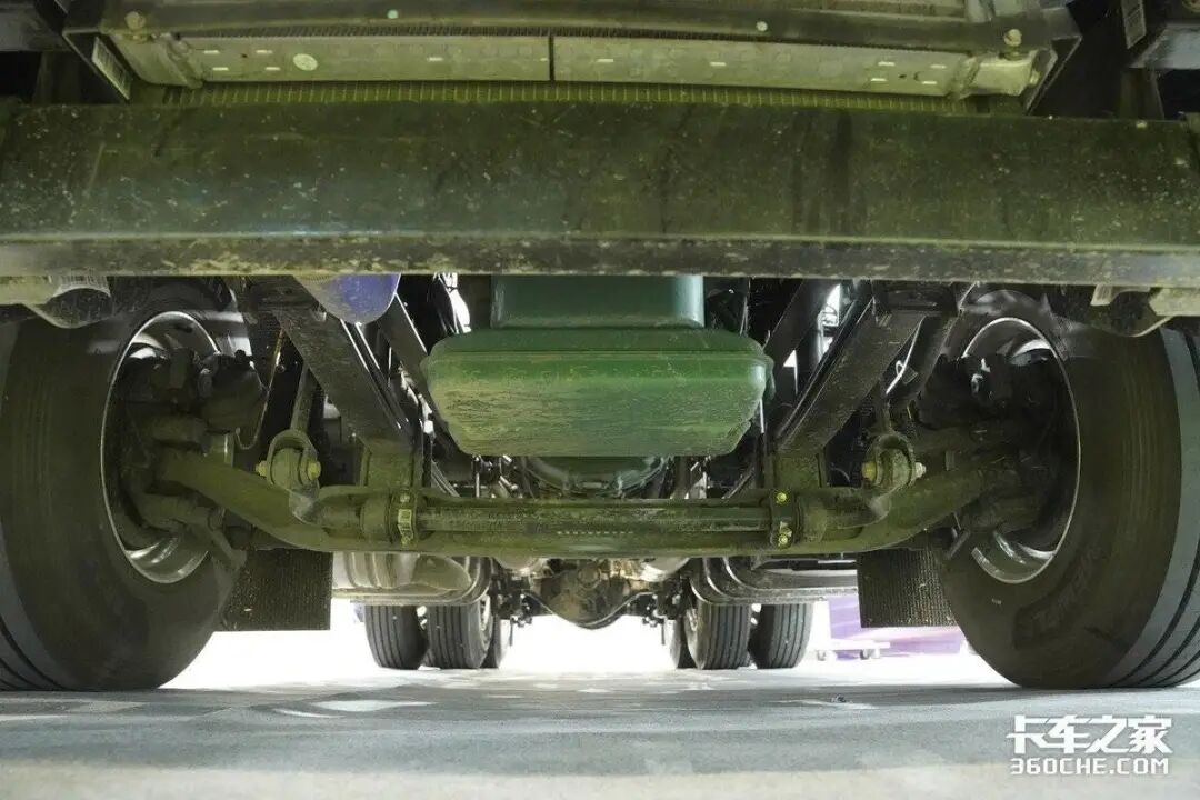 在续航方面,该车匹配主副油箱,其总容积为1000L,值得一提的是该车主油箱是采用双腔油箱设计,冬天低温环境下行车再也不用担心。还有,该车搭载全轮铝合金轮圈,轮胎规格为12R22.5。