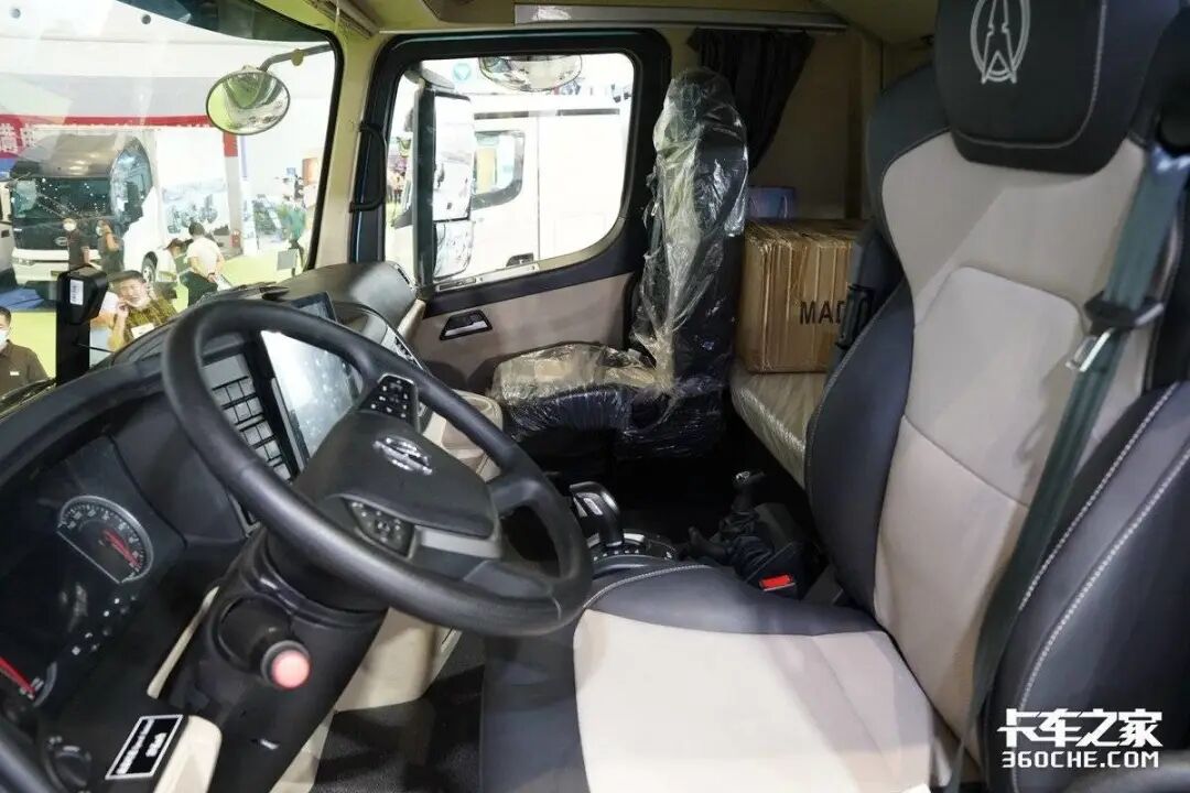 我们再看内饰,该车驾驶舱采用高顶双卧的设计,其有着较为宽裕的驾乘空间。在舒适性方面,该车配置有四点气囊悬浮及气囊减震功能,该座椅还支持通风加热。