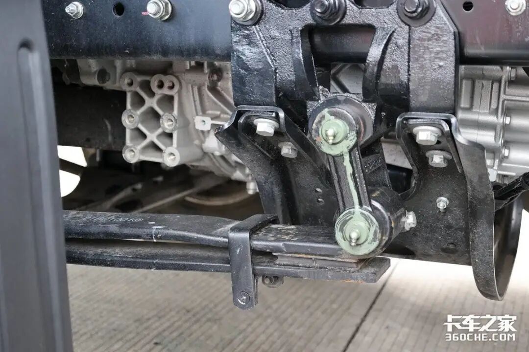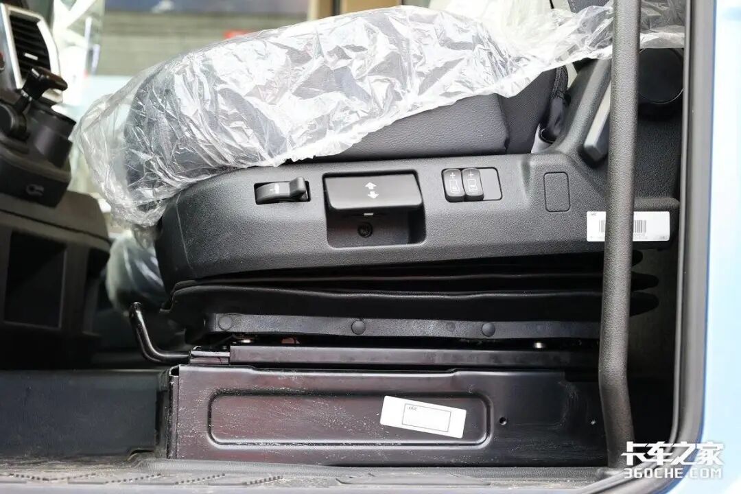 在提升车辆驾乘舒适性方面,实拍车适配有四点空气悬浮驾驶室,配合上前后少片簧悬架,以及带有多角度调整、腰托、阻尼减振强度的气囊座椅,且支持选装通风加热功能,驾乘舒适性有保证。