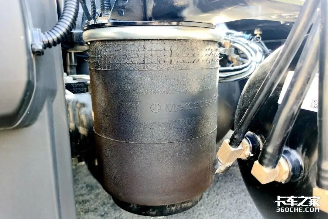 在底盘配置方面,国产奔驰Actros拿出了高水平表现,该车标配前后盘刹,具有制动响应迅速,制动热衰减稳定等优势。并且该车的后桥还标配了空气悬架,可带来更加平稳的行驶感受,对于高附加值货物的适应性更佳;同时对于高效甩挂运输的用户来讲,其高度可调节的特性也让它在摘接挂时更加高效。