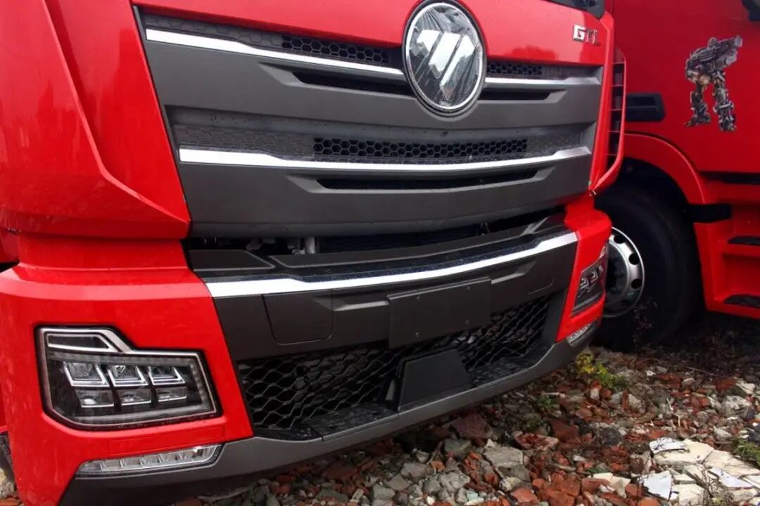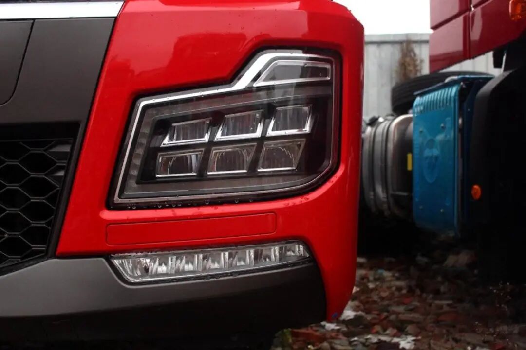大灯也没有使用之前的分体式大灯,而是采用了当前流行的一体式设计,同样贯彻了欧曼重卡的设计风格,相当帅气。