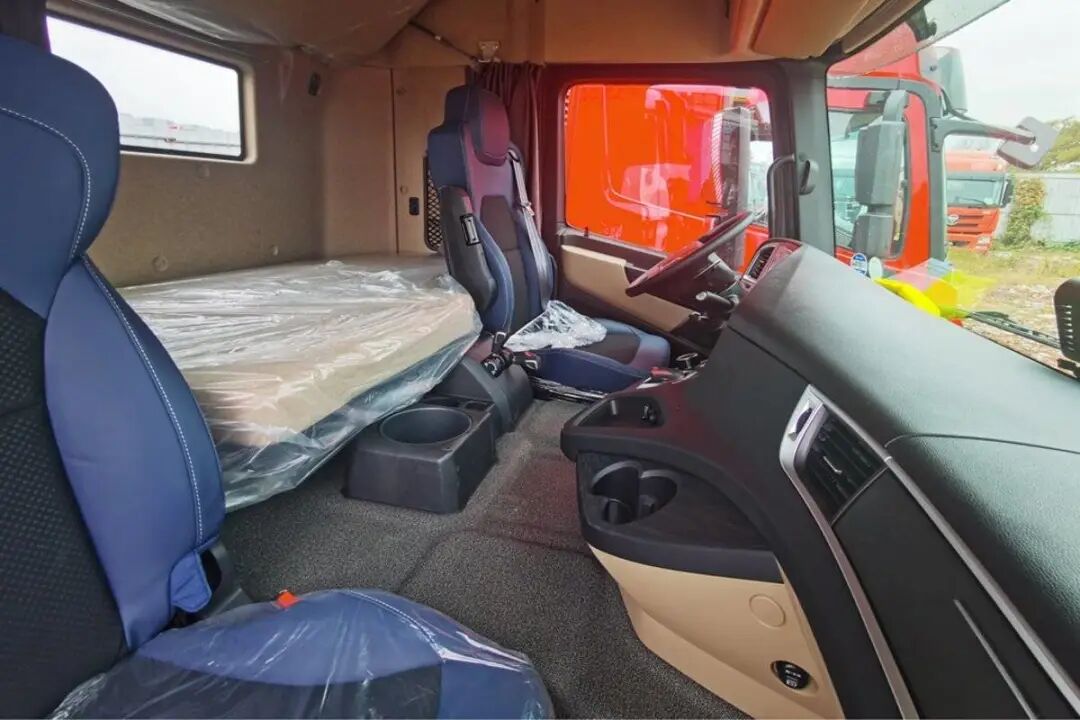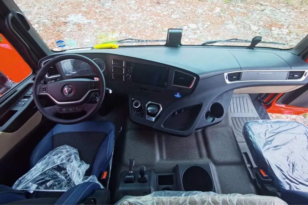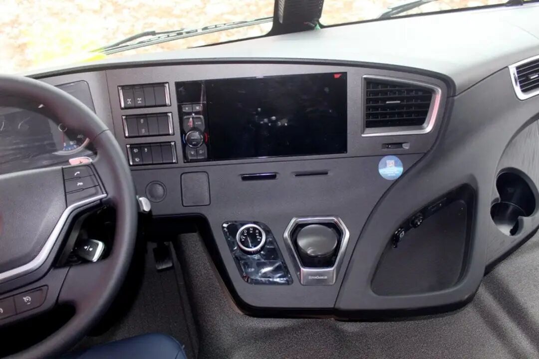 如果不看外观直接进入驾驶室,你绝对以为自己正在一辆欧曼银河里面,无论是驾驶室布局、配置还是细节的打磨完全采用了银河的内饰风格。同样的大空间,同样的全包内饰,以及科技风中控着实惊艳。