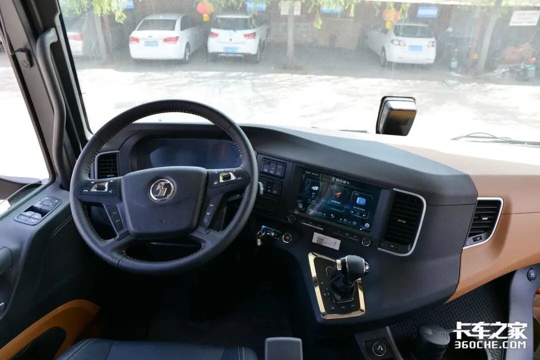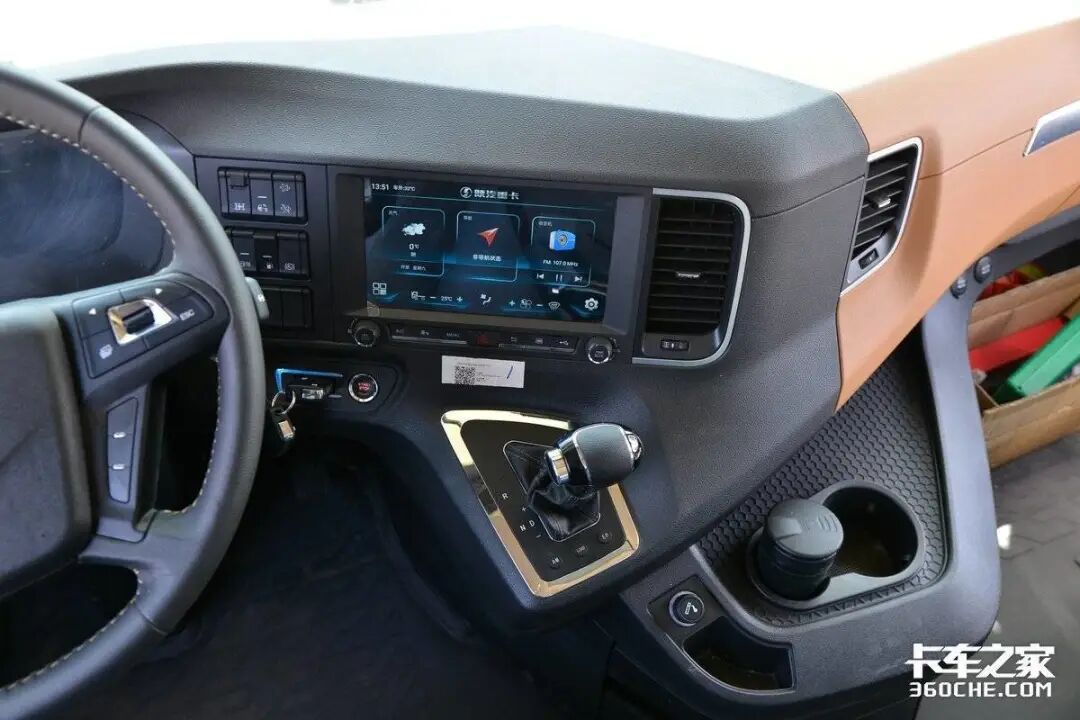 像轿车一样的挡把设计,操作非常方便,下方设置了不同工况下使用的按键,以增加车辆的适应性。集成在中控台上的挡把将出入驾驶位的过道空间最大程度释放了出来,起身去卧铺休息更加方便。