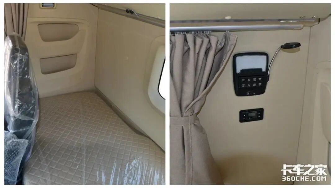 高效长途物流运输的工作强度都很大,一张舒适的卧铺才能舒缓一天的疲惫,让人快速入眠。该车的卧铺最宽处约90cm,卧铺厚度约在10cm,并且尺寸较为规整,头部和脚部的空间不会觉得有丝毫压抑。卧铺内部的填充较为柔韧,不会因为太厚太软而睡不着。同时,卧铺一侧还设计了快捷按键面板和床头照明,像车内照明、车窗、多媒体功能都可以在躺卧时操作,非常方便。