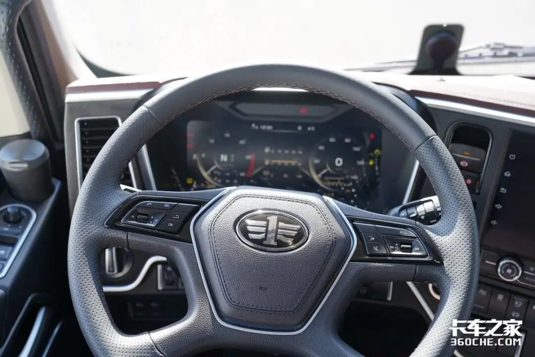 除此之外,车辆多个模块均采用铝合金材质,搭配上其他轻量化设计可有效帮助整车减重,毕竟轻车才能多拉货。除此之外,车辆还通过采用解放高端动力链,低滚阻轮胎、主动进气格栅、PCC预见性巡航更节省等多种方式齐头并进帮助省油,百公里29L的综合油耗可不是简简单单就能办到。