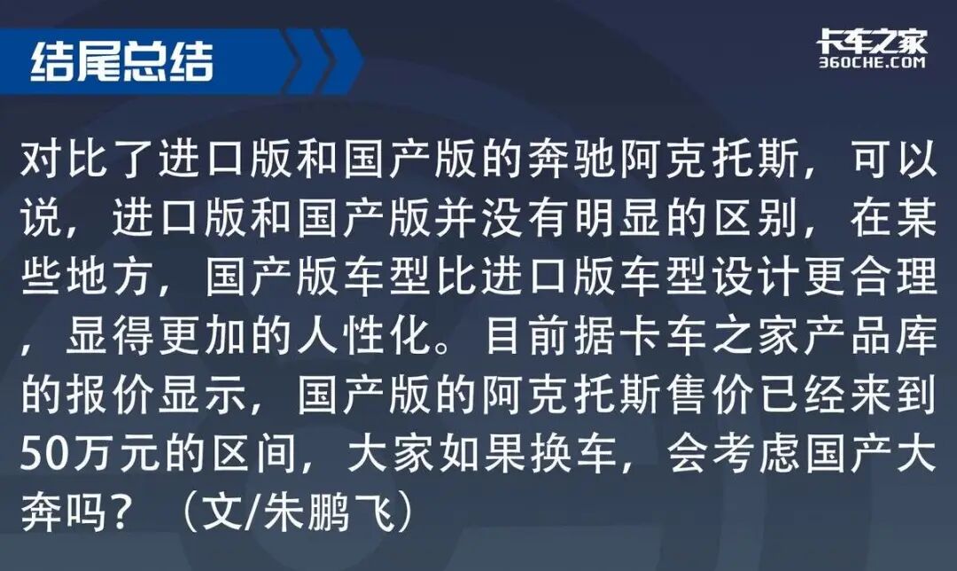 【卡车之家 原创】距离2020年,奔驰官宣国产奔驰卡车已经快2年了,不得不说奔驰的动作确实快,毕竟作为生产厂家福田汽车在之前就有过多年的合作经验。那么接下来,我们就来看看国产的奔驰阿克托斯和进口的阿克托斯有何区别。