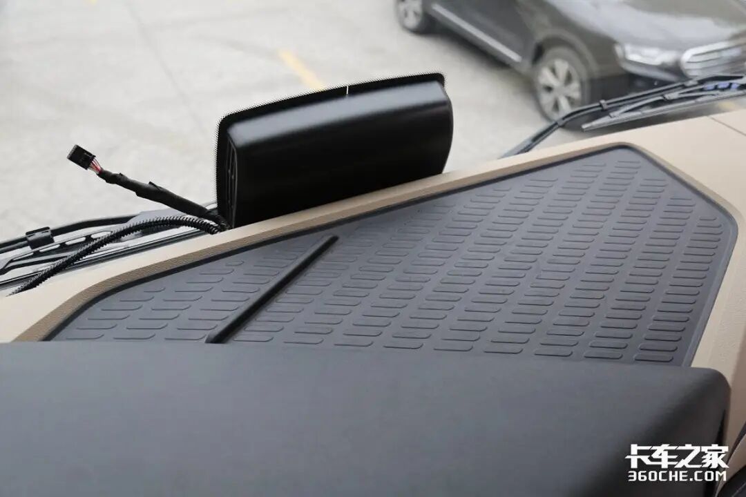 中控台采用搪塑、硅胶等多种颜色的材质所打造而来,整体颇具设计感,而中控台中间区域也单独设计了置物台,可以放置诸如手机、纸张、运单等多种零碎物品,不容易发生滑移。而中控台下方为两个置物抽屉,并且其中还进行了分隔处理,副驾驶一侧也有两个24V15A的外接电源接口,可以用于日常充电使用。