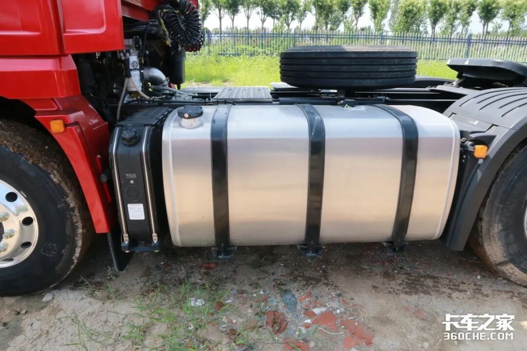 综合来看,该车总油箱容积大约在1000-1100升左右。如果是能够将尿素罐设计到驾驶室后方,把蓄电池布置到车架尾部,同时增大主油箱和副油箱体积,那么油箱总容积还能得到进一步提升。当然,每个主机厂设计方案不同,牵一发而动全身,不是说改就改,其底盘线路、结构可能都会全部发生变化。