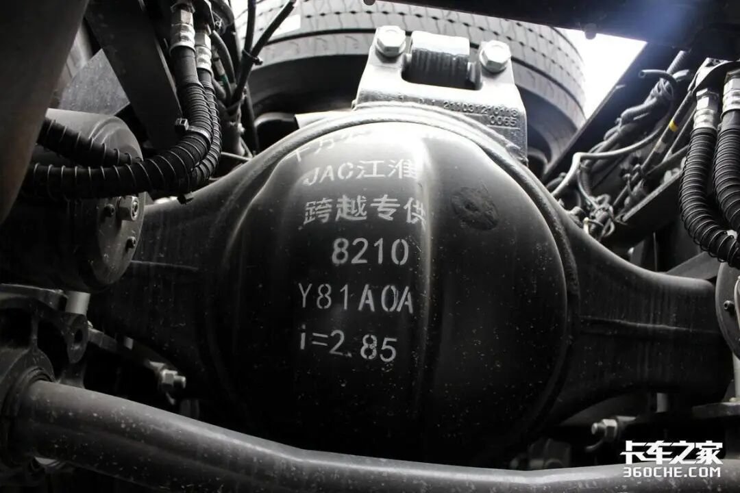 后桥采用的是江淮跨越专用高端后桥,速比为2.85,保养周期同样达到了10万公里,搭配8气囊悬架设计,保证甩挂运输中的高效运营效率。为了保证长续航的需求,这款车采用的是双油箱设计,总容积达到了1400L,并且带有加热设计。