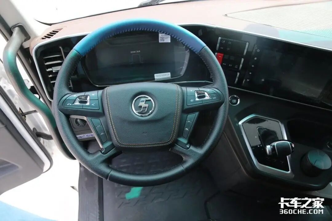 与之匹配的变速箱为采埃孚ZF12挡手自一体AMT变速箱,而且还配有液力缓速器,适用于长下坡路段。但是在挡把的设计上,总觉得差点意思,虽然挡把和主驾驶座椅集成设计在了一起,但是相比集成在中控台上,这样的设计依然会占用一部分驾驶室的空间。