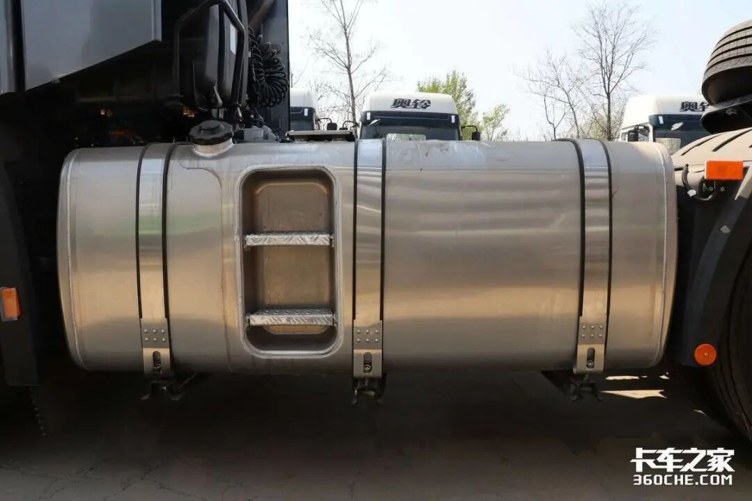 对于长途运输来说,车辆油箱的续航能力也至关重要。实拍的欧曼银河穿越版采用双油箱设计,其总容积达到1100L,如果我们按照百公里油耗30L来计算,该油箱能为欧曼银河穿越版提供3600公里左右的续航。另外,该油箱的主油箱为双腔油箱设计,能够加注一部分低标号的柴油。而低标号的柴油在北方冬天行车时没那么容易结晶,这样可以提高车辆的运输效率。