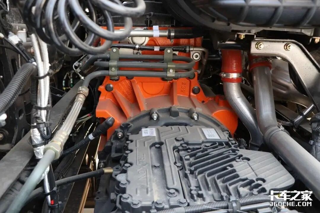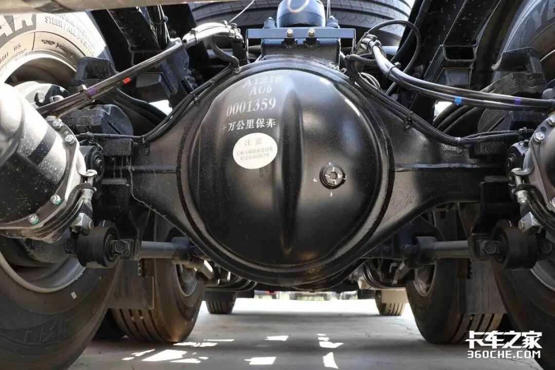 传动系统与之匹配采埃孚12TX2621TD自动档变速箱,其为直接档设计,头档速比为16.688,最大输入扭矩为2600牛米。此外,该车还匹配有液力缓速器,好处就是无惧长下坡路段,也省去了淋水装置,既降低整车自重,又能节省用车成本。
