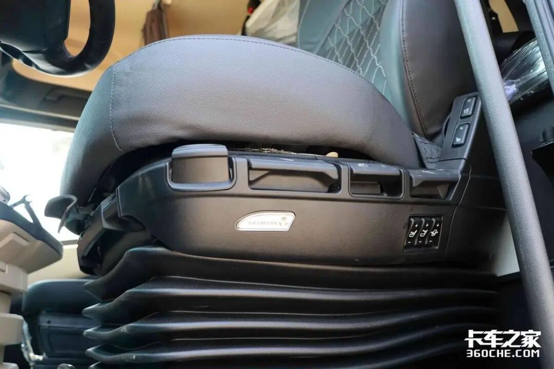 在舒适性能上,除了驾驶室气囊悬置,该车还搭载格拉默新一代座椅,支持腰部、背部支撑、仰角等的调节,以及通风加热、按摩等功能,当长途驾乘时,极大程度上可以减轻卡友们的疲劳程度。