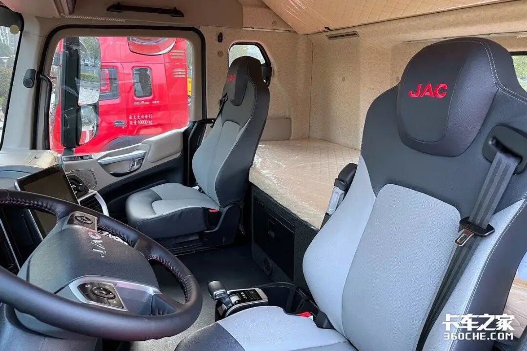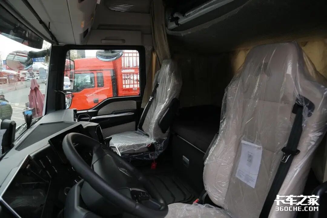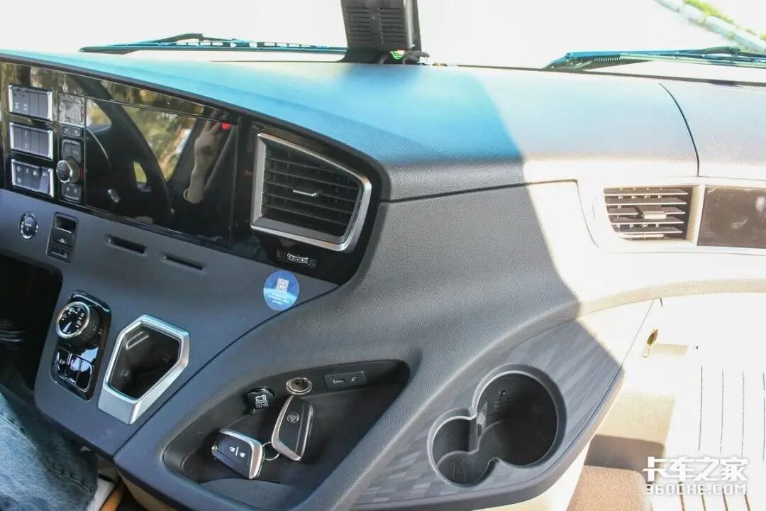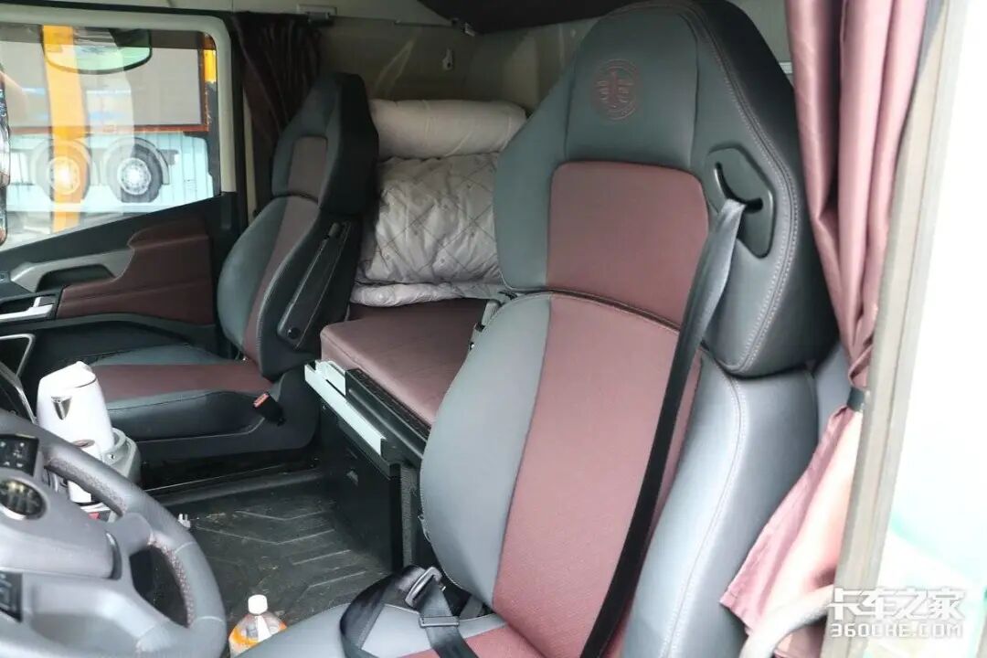 最后就是驾驶室设计,这款超越Q7采用高顶双卧平地板驾驶室,其内部的活动空间非常大。在舒适性上,除了四点气囊悬浮驾驶室,该车主副驾座椅均具备气囊减震功能,主驾的气囊减震座椅还有通风、加热功能。通风加热功能对南北方都跑的卡友很有用,不用担心屁股冷热两极化。