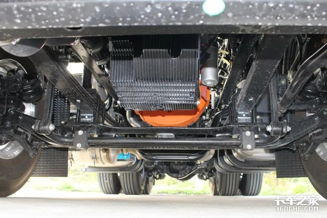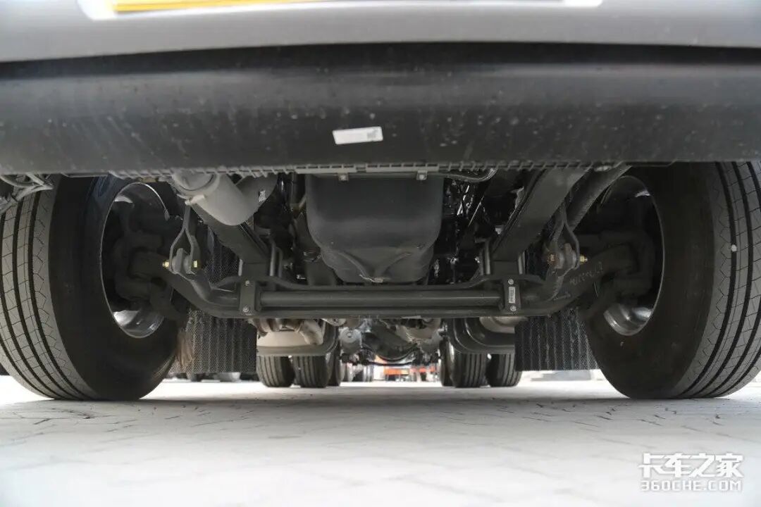 在底盘布局上,实拍车型匹配440后桥,速比为2.733,其轮胎规格为12R22.5。在悬架设计上,该车选用少片簧设计,其前2后4形式的板簧悬架很好的兼顾了承载性和舒适性,还一定程度上降低了底盘自重。另外,该车采用双油箱设计,其总容积达到1100L,如果我们按照百公里油耗30L来计算,该油箱能为欧曼银河穿越版提供3600公里左右的续航。
