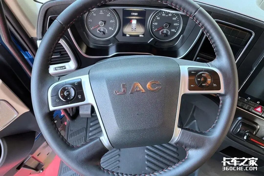 在其他配置方面,有驾驶室四点气囊悬浮、伊思灵气囊减震座椅、四幅式多功能方向盘、全液晶仪表盘、电动门窗、后视镜电动调节及电加热、电子手刹、一键启动及可满足大家日常影音娱乐需求的中控大屏,可以说该车驾驶室全方面提升了卡友们的驾乘感受。
