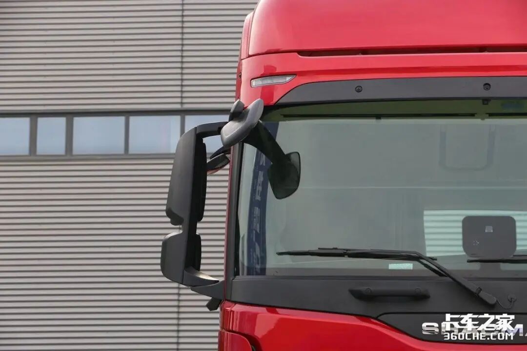 后视镜采用分体式设计,并且带有电动调节电加热功能,货车盲区大易引发事故,为了解决这一问题,这款车在两侧后视镜的下方以及前后均设计有摄像头,形成360环视,全方位减少视觉盲区。