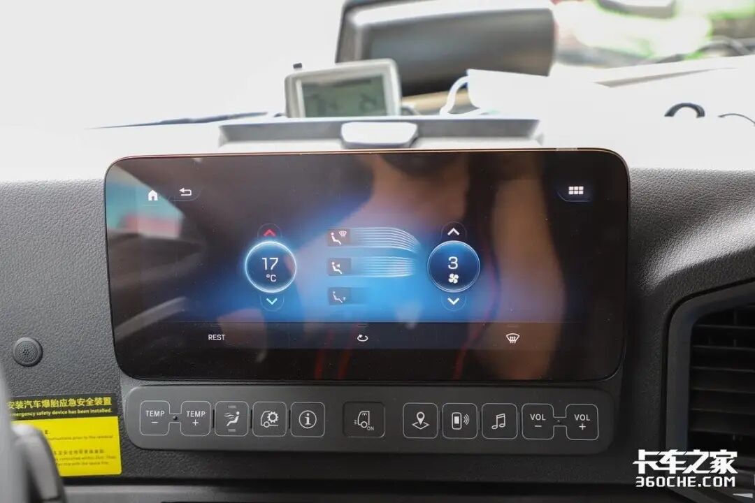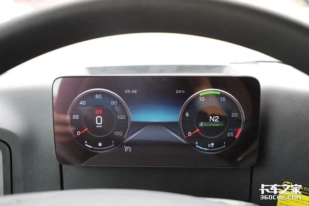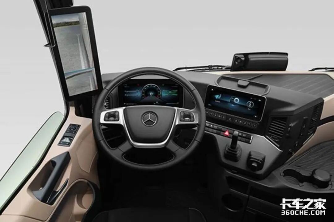 国产奔驰Actros星辉尊享版装配的的“NewHMI智能互动驾驶舱”,拥有12.3英寸液晶仪表显示屏和10.25英寸多媒体触控屏,且配有了一键启动、原厂驻车空调、发动机余热取暖以及驻车暖风等。