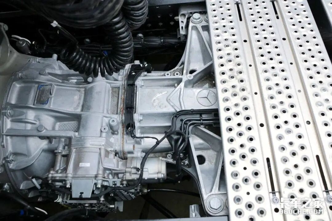 与OM471发动机匹配的是奔驰第三代PowerShift智能手自一体变速箱,型号为G281-12系列,这款变速箱的头档速比高达14.93,最高档速比为1。进入国内市场以后,该变速箱优化了自身的换挡逻辑,能更好的适应中国的道路运输环境。