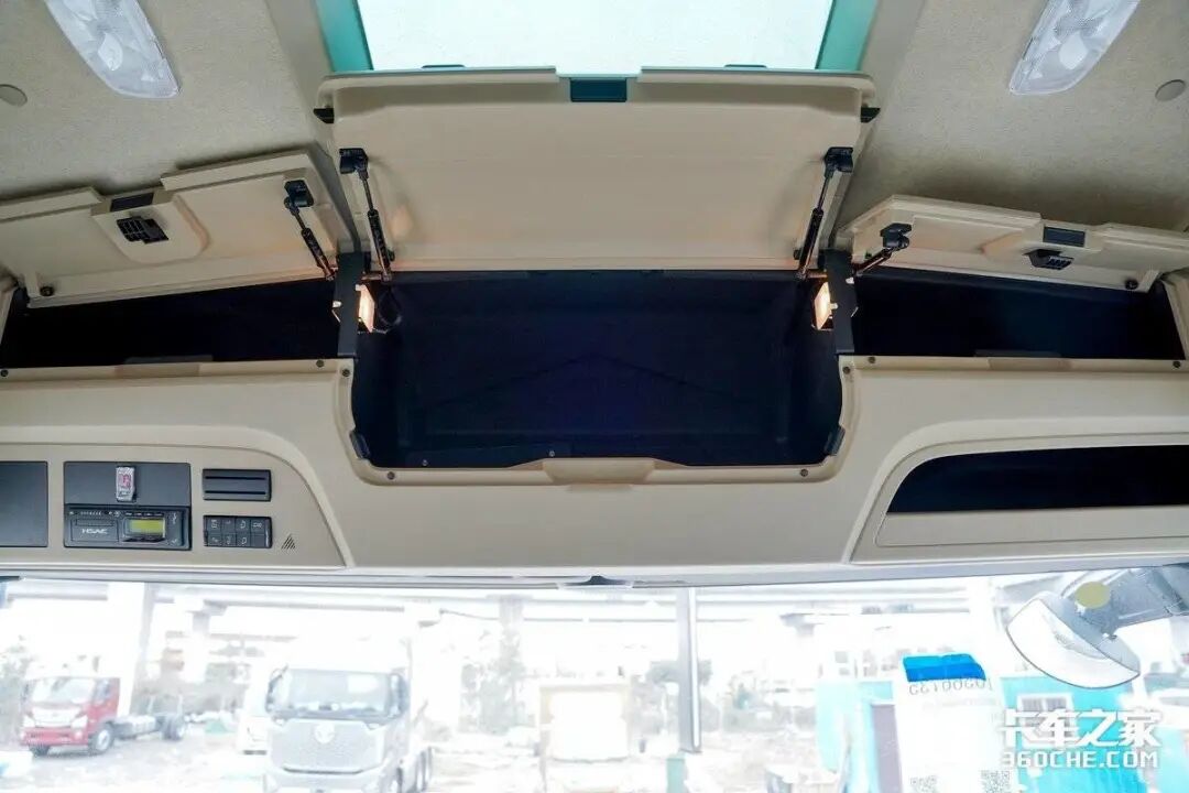 卧铺填充和家里面稍微软一点的沙发差不多,座椅和床垫是我们驾车过程中接触最多的部件,也是直接体现舒适性的配置,休息好了才能拥有好的“精气神”。并且,车辆还可以选装驻车加热器及智能恒温空调,可以利用发动机余热为驾驶室提供暖风,无惧酷暑寒冬。