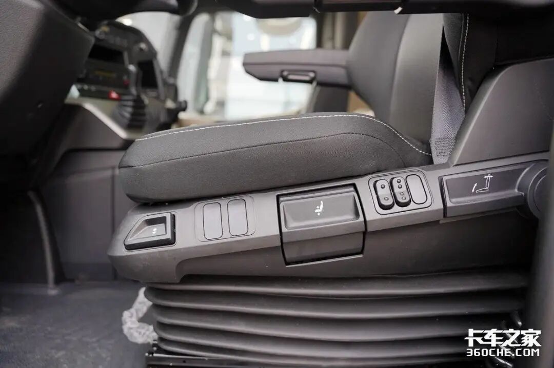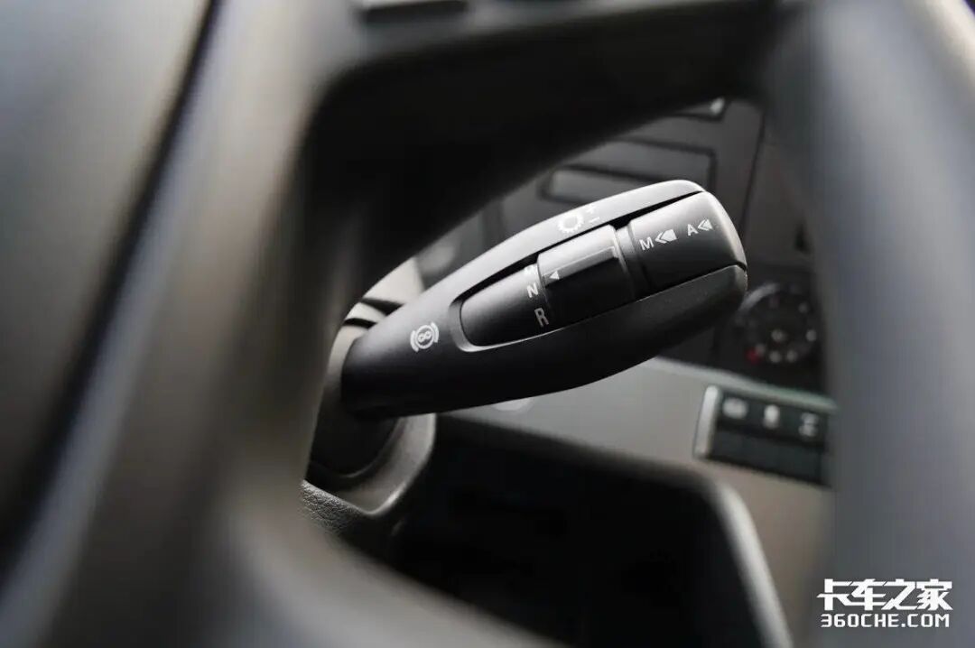 为了方便用户搭挂甩挂运输,阿克托斯C的后桥采用全气囊的悬挂形式,气囊高度调节的开关被设置在了方向盘上,通过方向盘即可对车辆的气囊高度进行调节,非常方便。