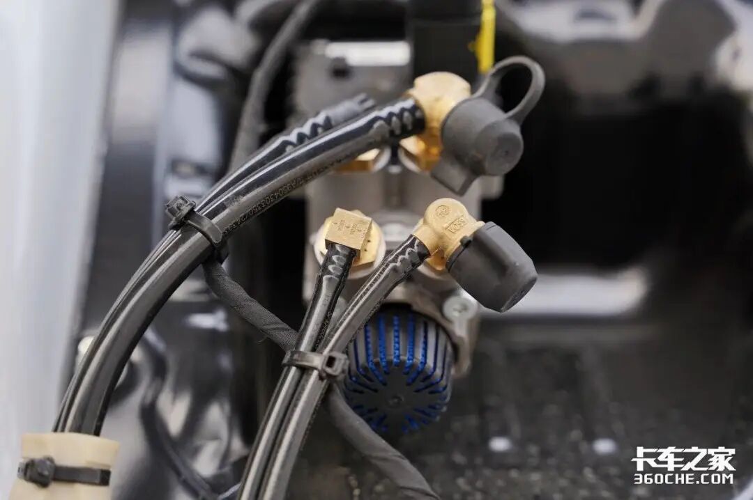 奔驰阿克托斯C国产化之后,其底盘布局依然保留了德国血统的严谨。首先在底盘线束方面,可以看到奔驰阿克托斯C排列的非常整齐,并且在易损线外侧都包裹有尼龙保护套,线束捆扎的也非常扎实。除此之外,车辆底盘的接线阀口选择的都是VOSS筒质螺母,在耐腐蚀性方面表现相当可靠。