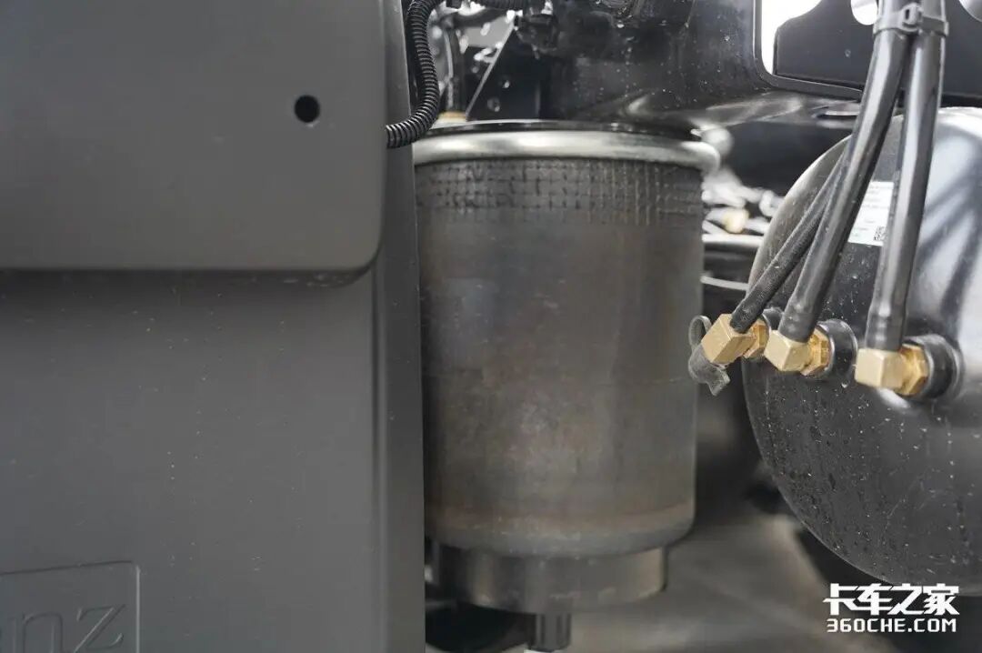 传动系统部分,这款奔驰阿克托斯C所匹配的是采埃孚传胜系列AMT手自一体变速箱,实拍的这款变速箱采用直接档设计,作为采埃孚第四代AMT变速箱,这款变速箱具备空挡滑行、Prevision预见性驾驶等省油功能。康明斯和采埃孚的搭配作为市场上沉淀多年的组合,在卡友圈中一直有着非常不错的口碑。
