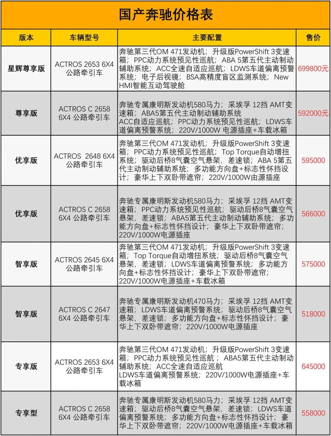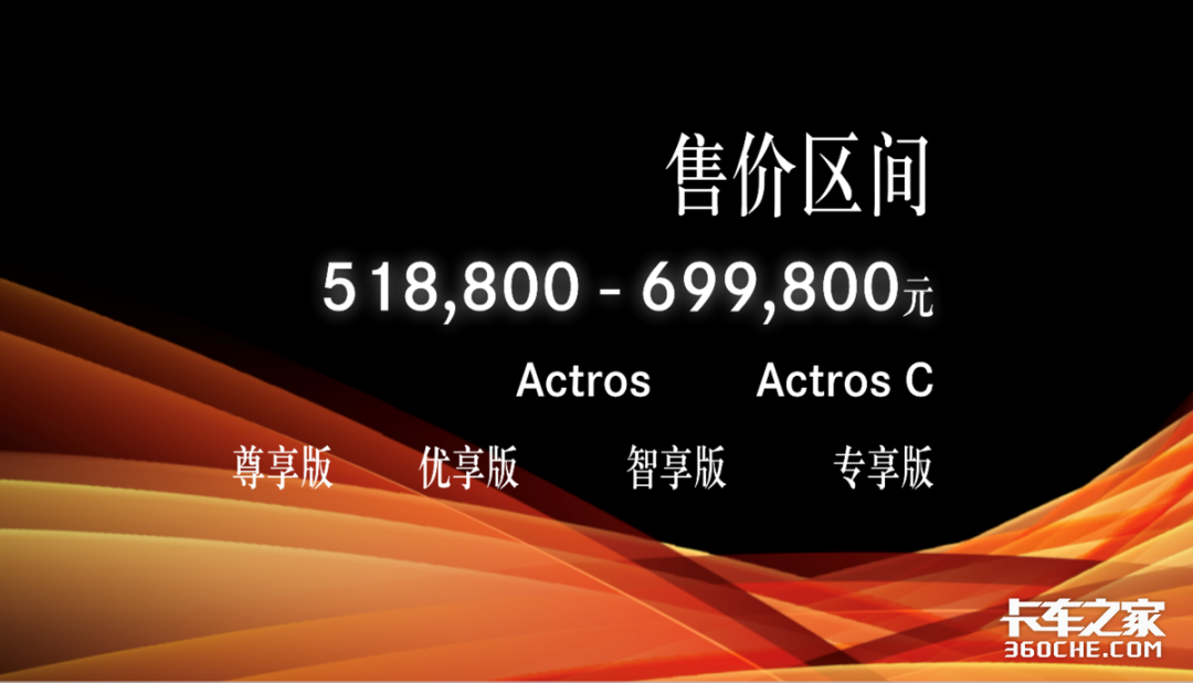 本次奔驰Actros国产以后,打出了“In China,For China 星耀东方,行稳驰远”的价值主张,以此表示“国产奔驰并不是对海外车型的简单复刻,而是针对中国市场和用户进行精心调教的重卡”。本次卡车之家将为卡友们详细介绍一下这款搭载康明斯580马力发动机的国产ACTROS C,不过咱们先具体来看一看国产奔驰具体都发布了哪些车型,价格又是如何。