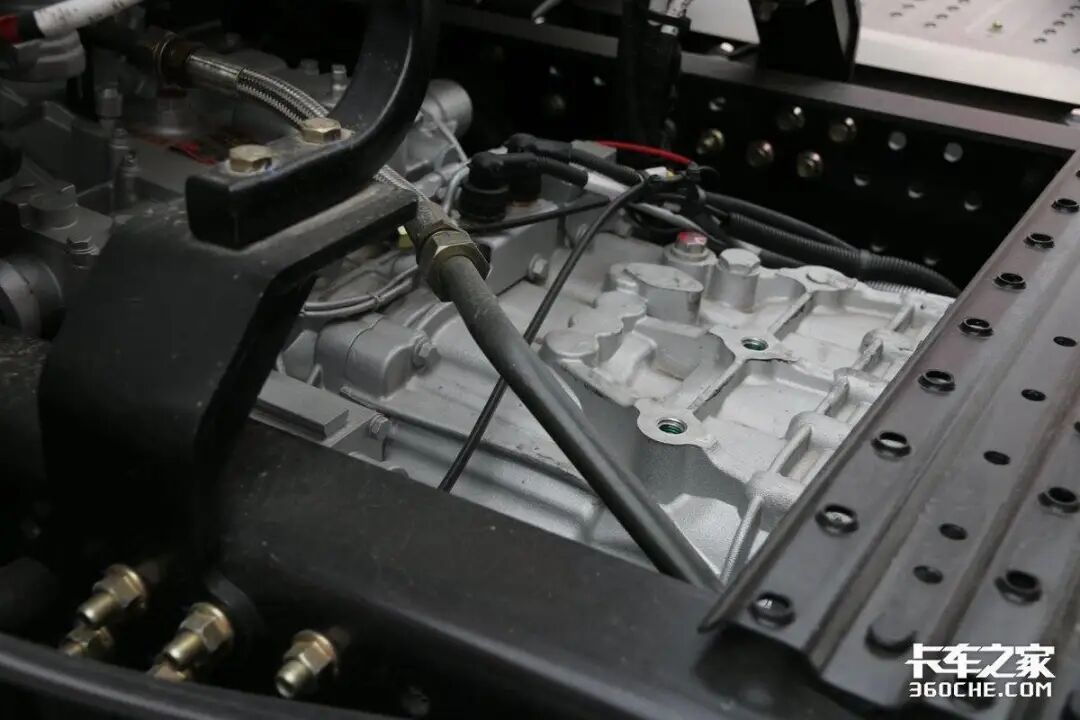 陕汽德龙这款子母车的主车均采用的是德龙M3000S 6x4牵引车,采用相同的动力链,依然是卡友们熟知的黄金动力链,实拍车搭载的是潍柴WP12.460E62发动机,排量为11.6L,最大输出动力为460马力,在1000-1400转时可爆发峰值扭矩2200牛米。