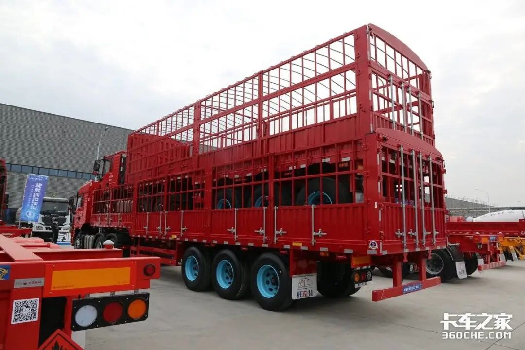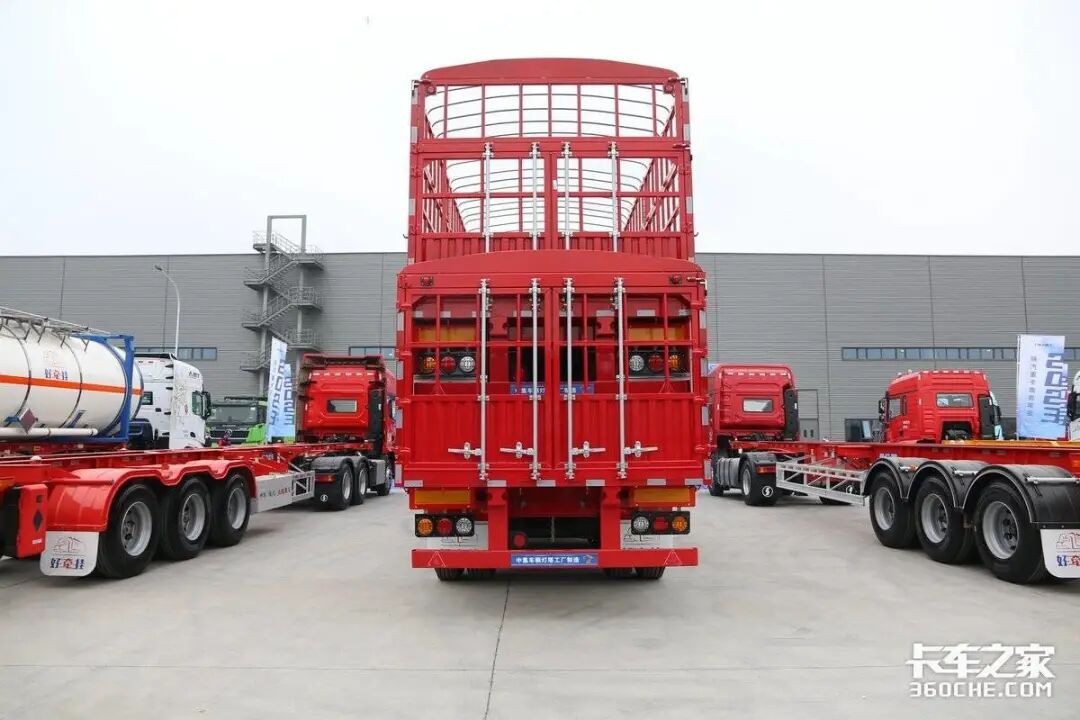 子车同样采用的是三轴仓栅半挂车,子车高度为2.83米,货厢尺寸为9500x2450x3550mm,同样采用的是气囊悬挂,可以降低车身自重,整车自重最低可至7.55吨。子车上层可内翻,子母组合总高度不超4米,但是单独使用时也可以最大程度装载货物,合规尺寸而且重心低,行车更安全。