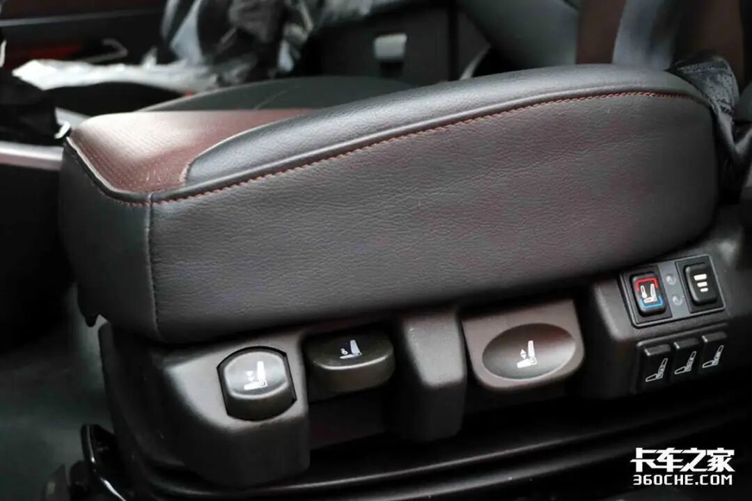 为了给到驾驶员更加平稳的驾乘环境,车辆的驾驶室采用了气囊悬浮的悬挂形式,搭配上支持多项调节的伊斯灵气囊减震座椅,在经过恶劣路况时也能给到驾驶员一个非常舒适的驾驶感受(副驾同样装配有支持多项调节的气囊减震座椅)。