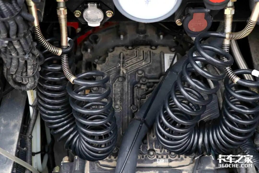 传动系统部分,与这款车匹配的是ZF(采埃孚)传胜系列12档AMT变速箱,具体型号为ZF12TX2621TD(带缓速器)。这款变速箱采用直接档设计,传动效率高达99.7%,和康明斯发动机也是非常经典的动力组合,在卡友圈中的口碑一直不错,无论是可靠性还是节油能力,都是有目共睹。