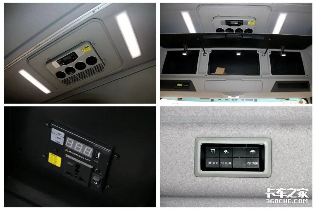 另外,该车驾驶舱还配置有1米1宽大卧铺、220V生活电源、顶置驻车空调、卧铺蛇形阅读灯、三一迎宾灯、卧铺抽屉和后围储物盒等,极大程度上满足卡友们的日常生活使用需求。